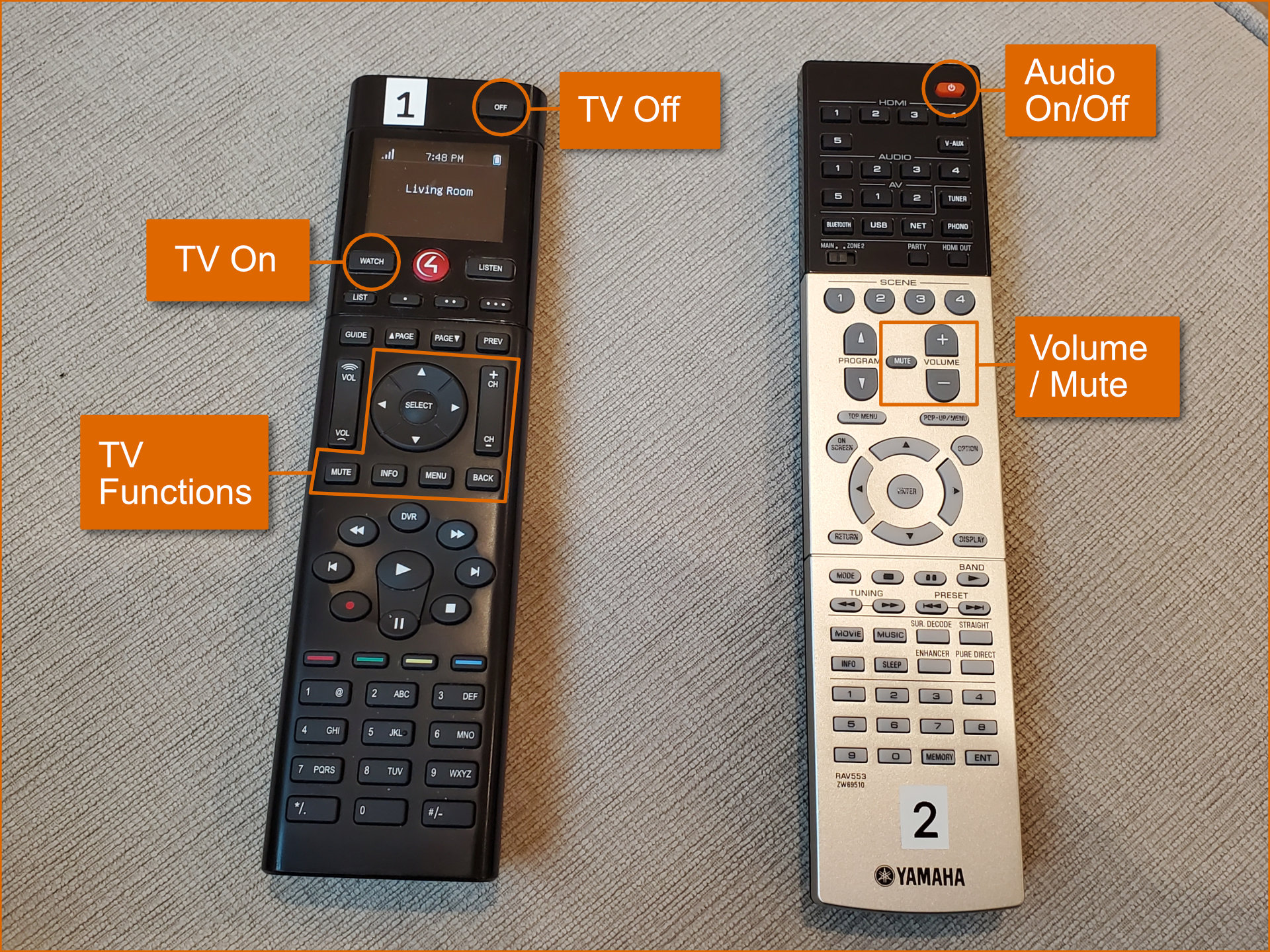 TV and audio system remote controls