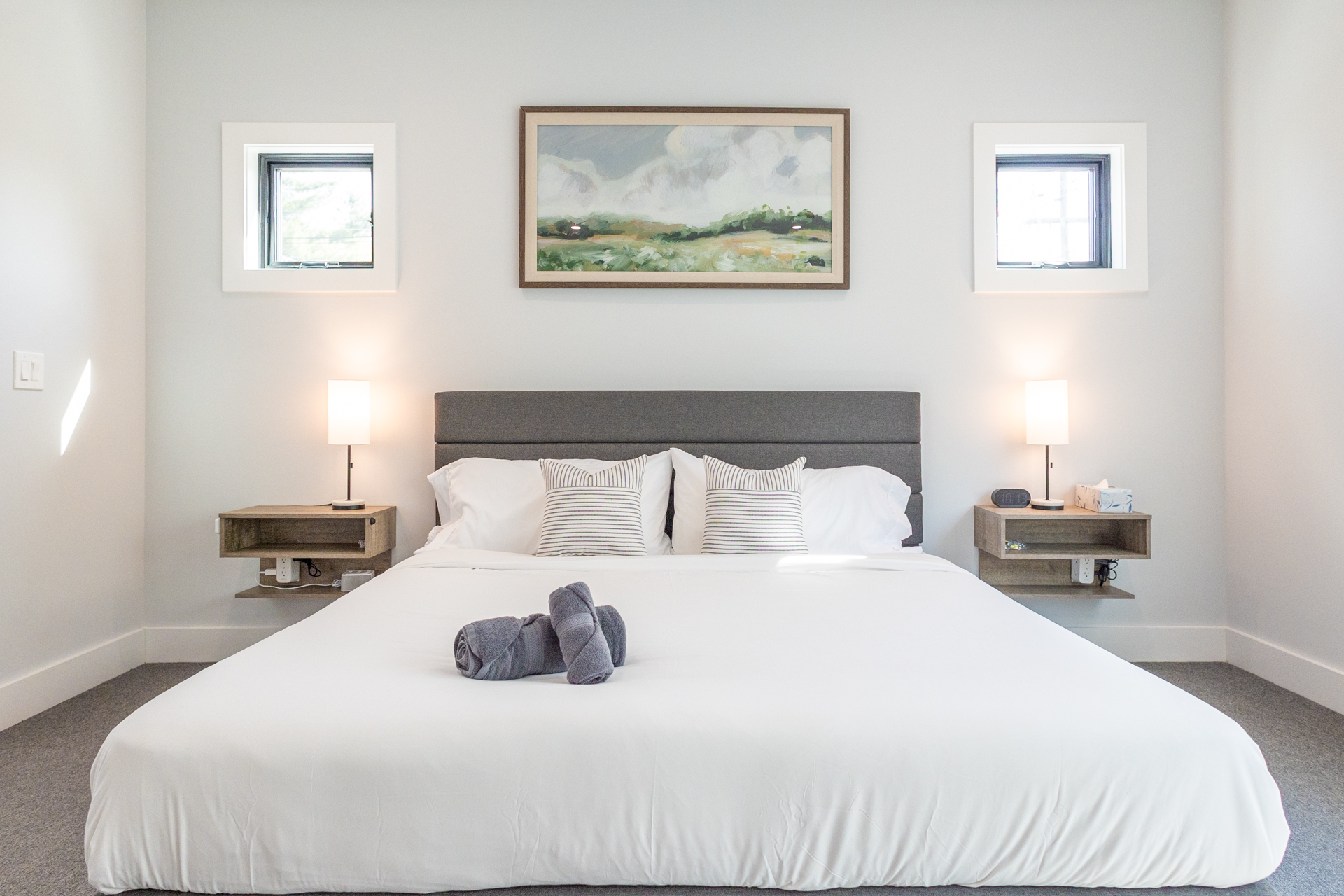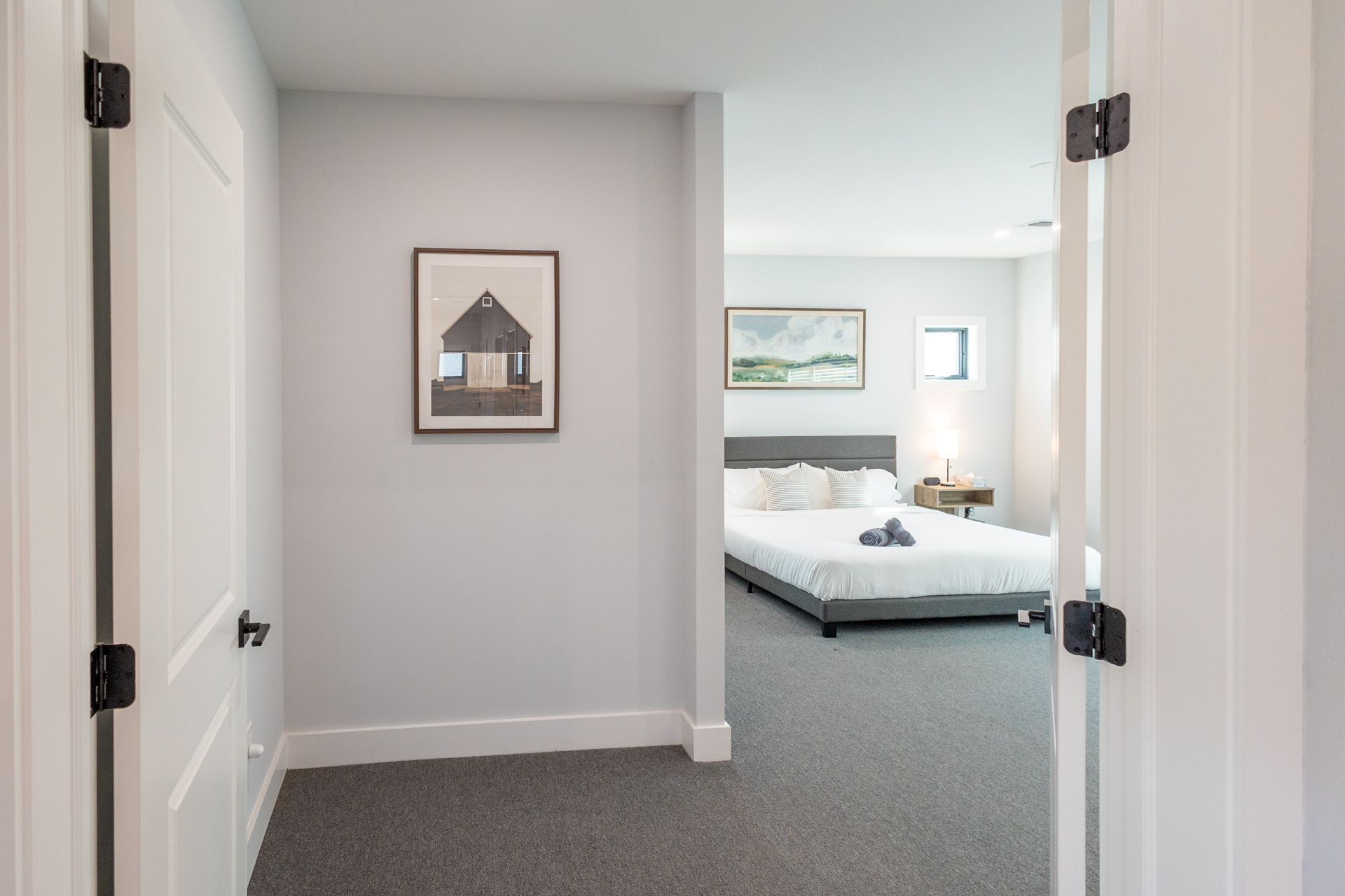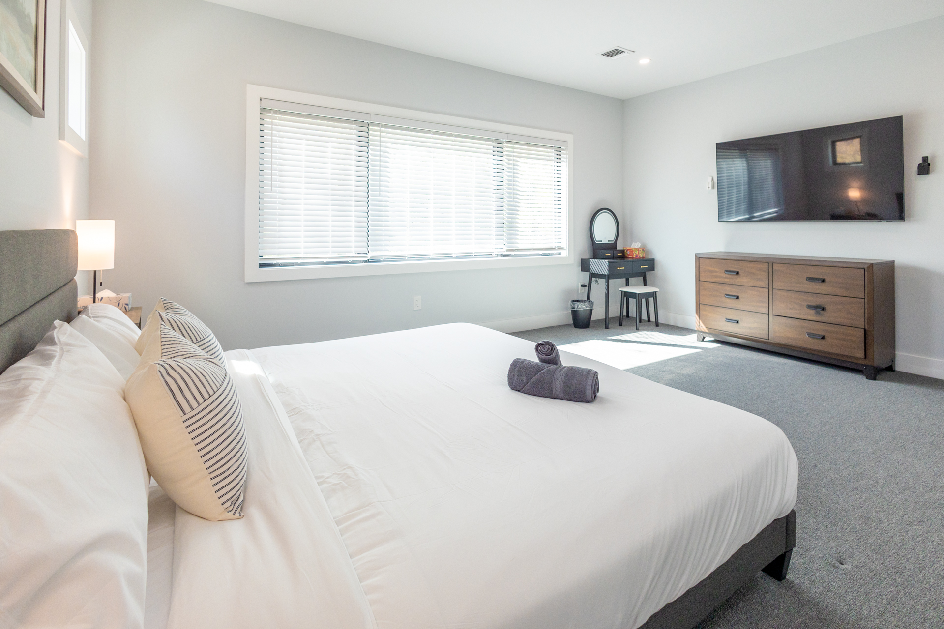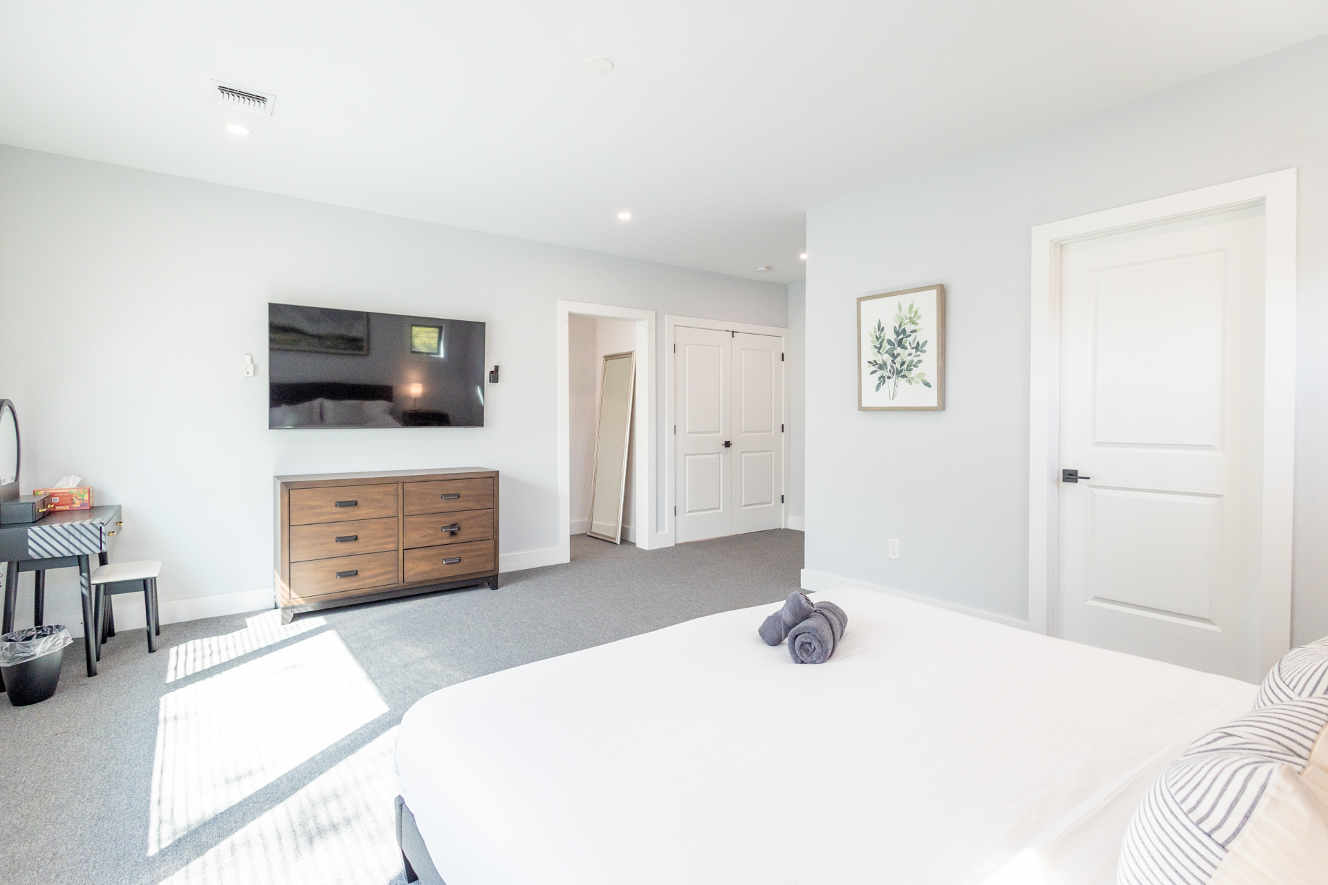 • Master bedroom: king bed, ensuite bathroom, and a large walk-in closet.