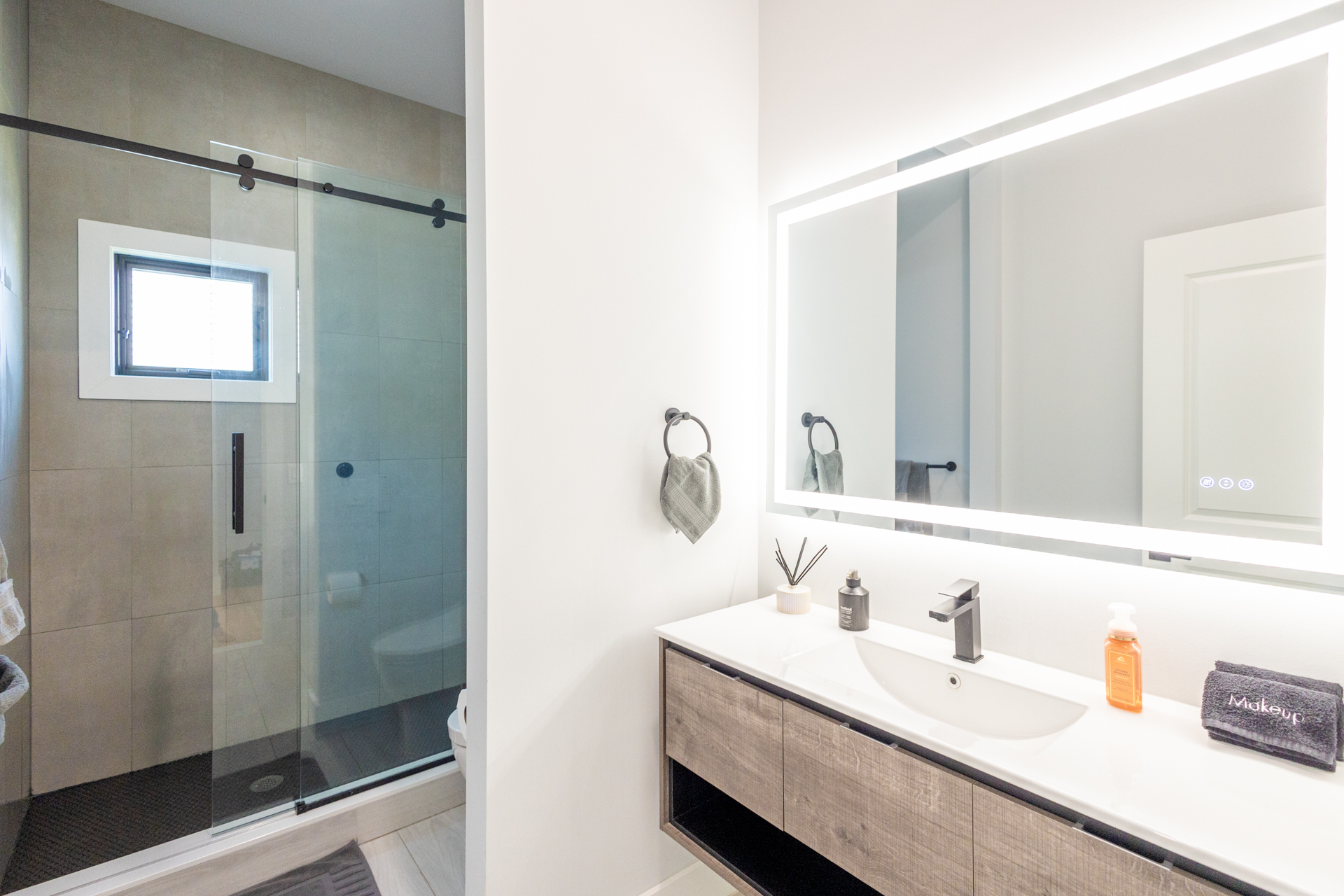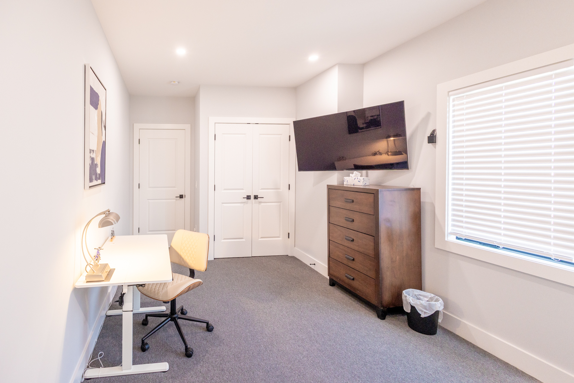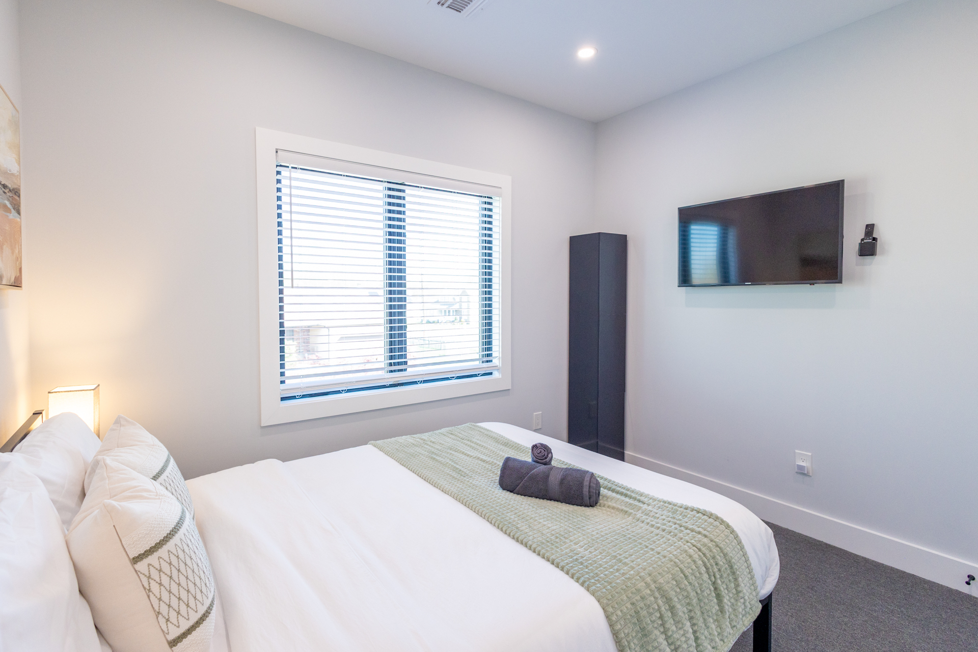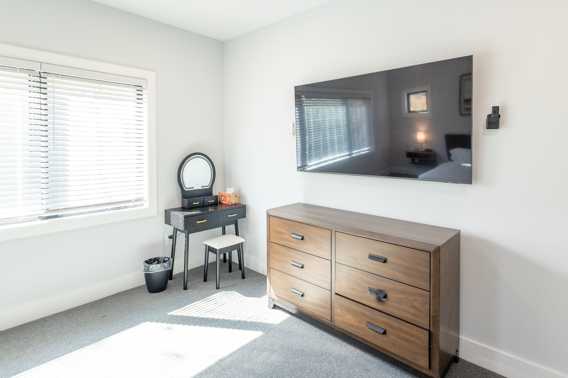 • Master bedroom: king bed, ensuite bathroom, and a large walk-in closet.